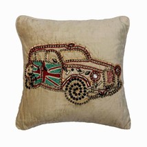 Decorative 16"x16" Car Crystal Bead Ecru Velvet Pillows For Couch-Vinatge Rider
