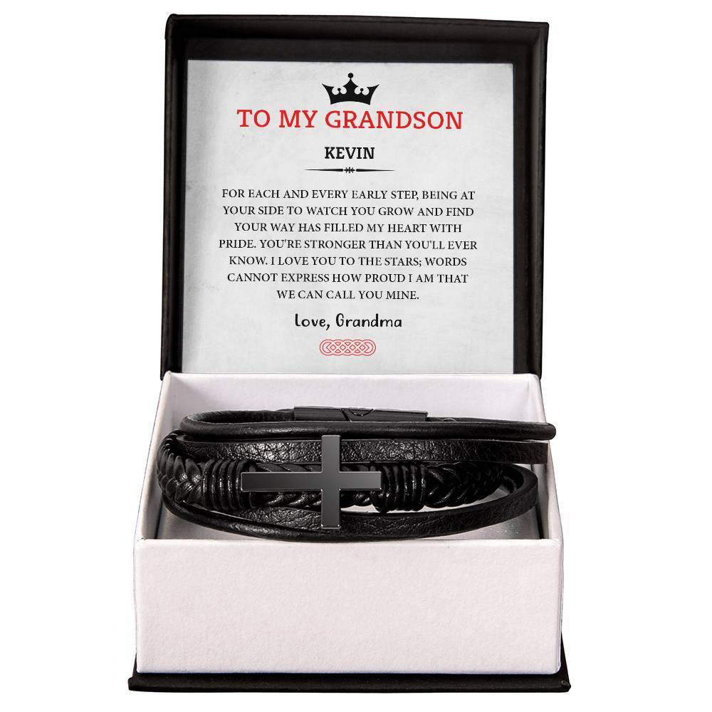 Meaningful Bracelet for Grandson, To My Grandson Leather Wrap Bracelet