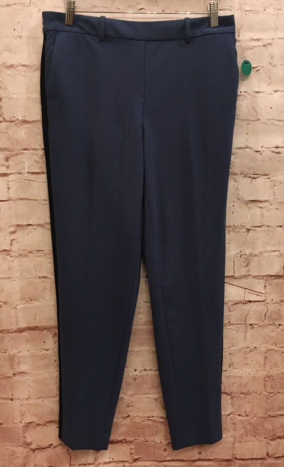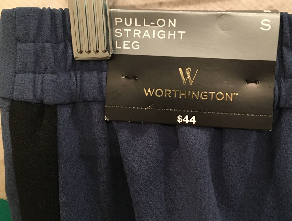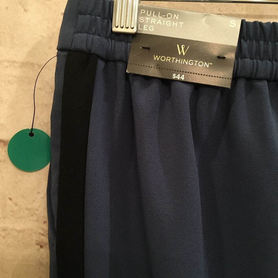 Worthington Womens Pull On Straight Leg Pant Blue Ankle Pant Black Stripe Size S