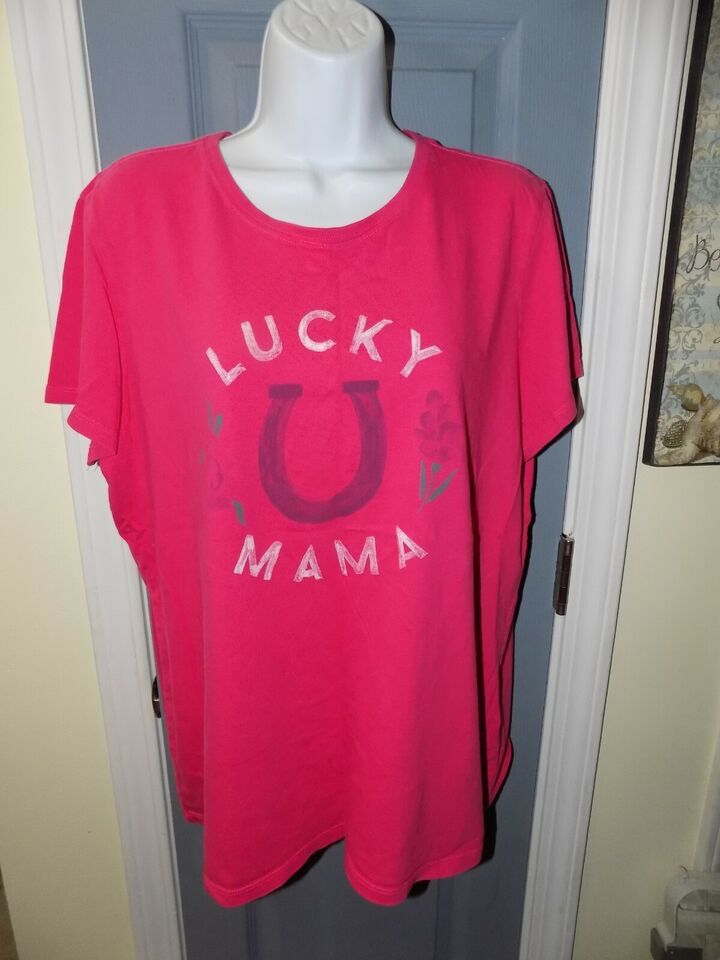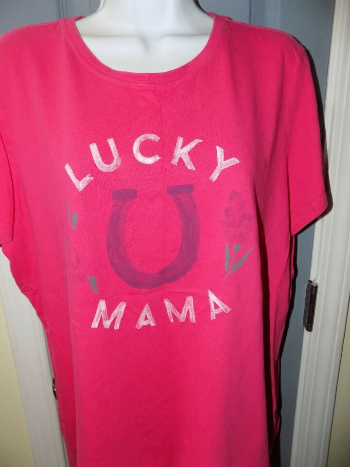 Life Is Good Pink Short Sleeve Lucky Mama Crusher T-shirt Size XL Women's EUC