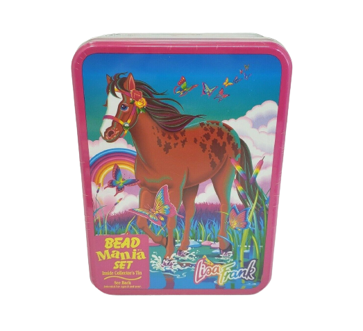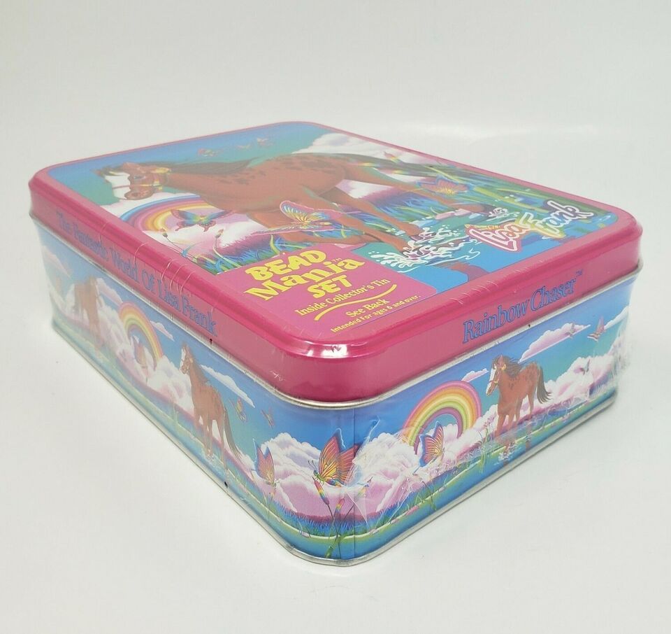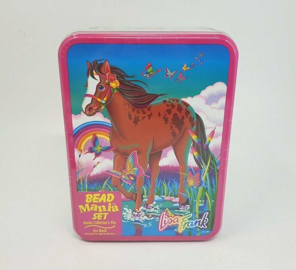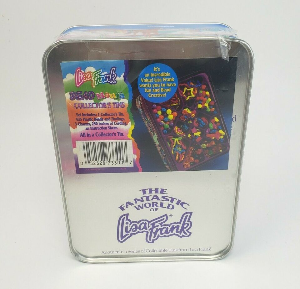 VINTAGE LISA FRANK BEAD MANIA SET COLLECTOR'S TIN JEWLERY KIT BEADS + CHARMS NOS