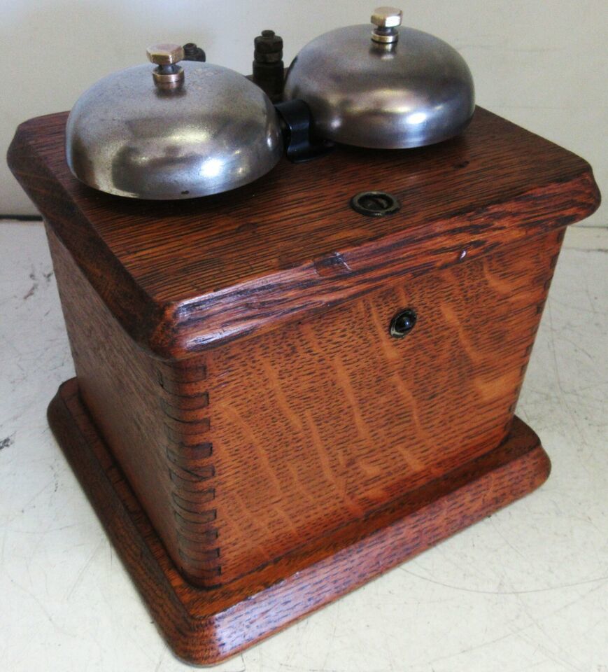 “Original oak bell ringer box operational, circa 1930's” |