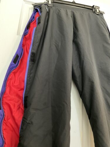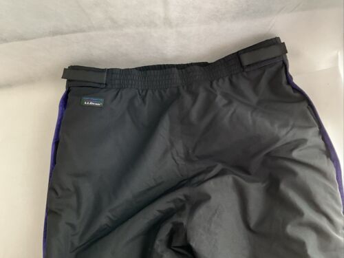 Pre-owned Kids 14-16 size large L.L. Bean unisex snow pants, elastic waist with side closures. Pant zips and over closure on the side from bottom of leg to top. Two zip front pockets. Pants are black , other pictures are differences in lighting.