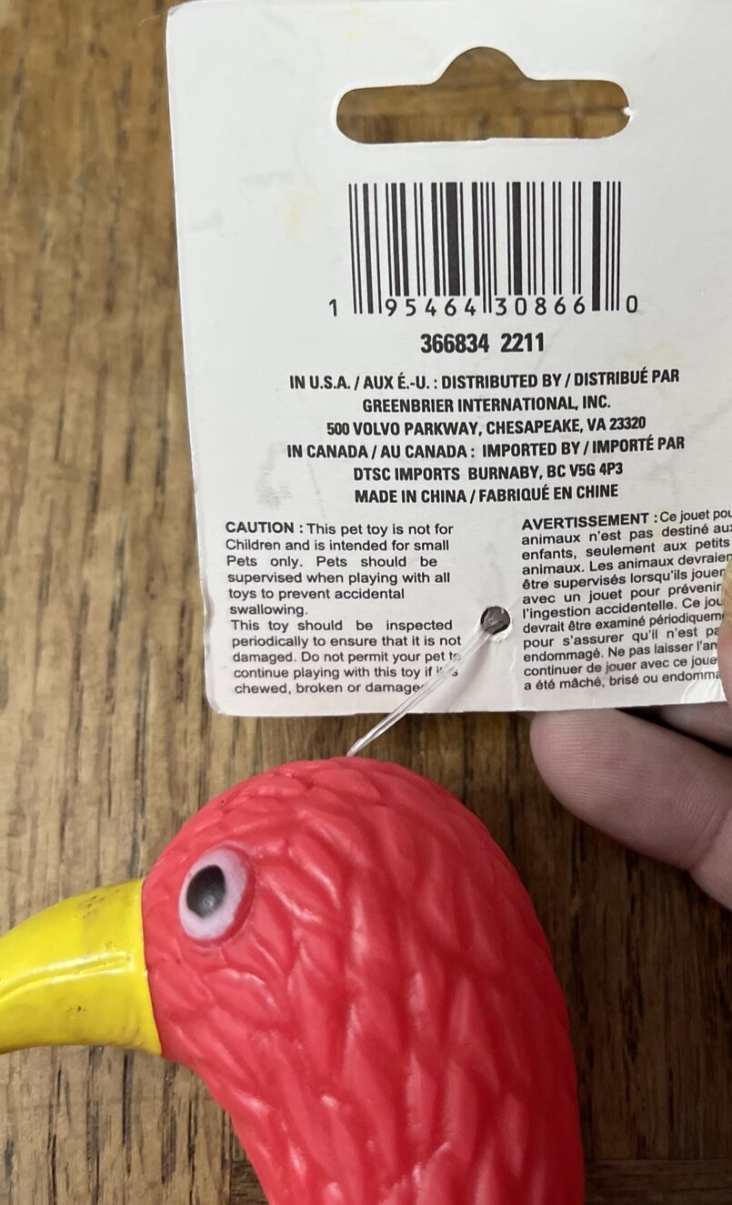 Greenbriar Kennel Club Squeaky Dog Toy (Red/Yellow)-Brand New-SHIPS N 24 HOURS