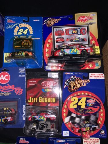 For fans of Nascar legend Jeff Gordon, we have a lot of 14 Winners Circle diecast racecars, featuring his iconic DuPont design. These 1:64 scale vehicles are perfect for collectors or fans of the sport, and each one is brand new and ready for display. The cars are officially licensed by NASCAR and feature Gordon's name and number on the side, along with other details like the sponsor logos and team organization. Made from high-quality materials, these diecast cars are durable and detailed, with realistic features that capture the excitement of racing. Whether you're a longtime fan or just discovering the thrill of Nascar, this lot is a must-have for your collection.