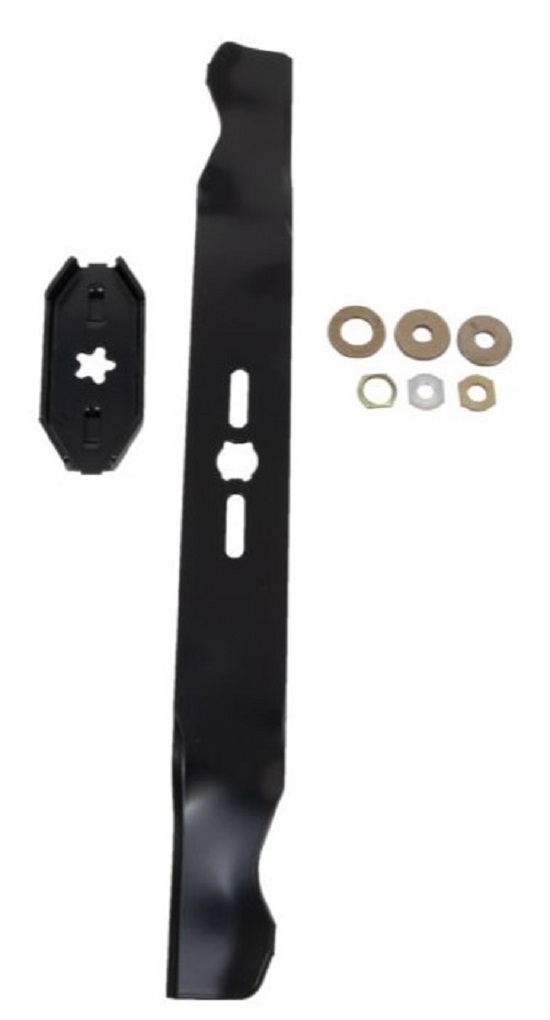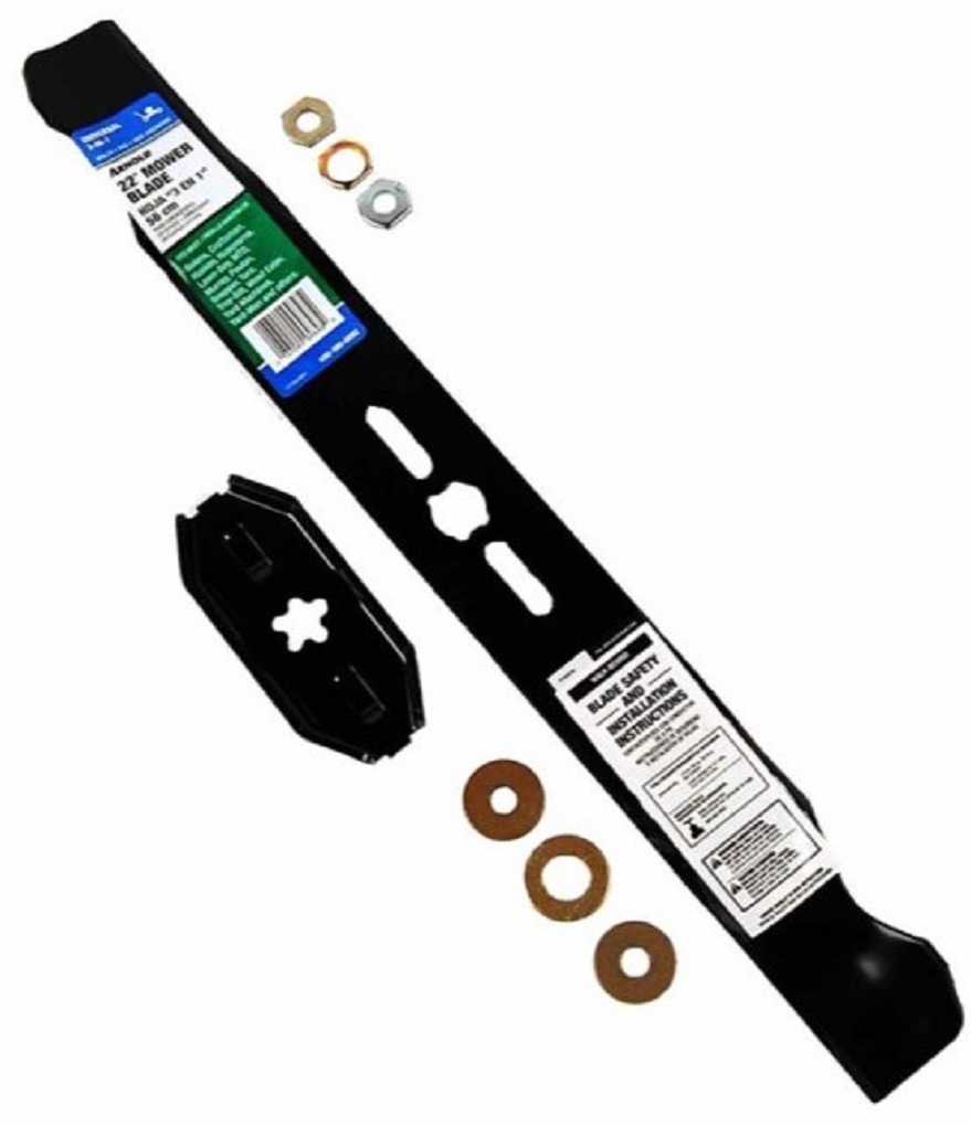Universal/fits most walk-behind mowers Bags, mulches and side discharges Includes sizing washers and cover washers Contains one blade Universal part for most 22-in. walk-behind mowers. Contents include one blade with Husqvarna and Toro adapters to fit 3/8 in., 7/16 in., and 5/8 in. universal center hole patterns. Quality tested for fitment, safety, and performance. The Universal 3-in-1 Blade is a multi-purpose blade that easily attaches to your lawnmower.