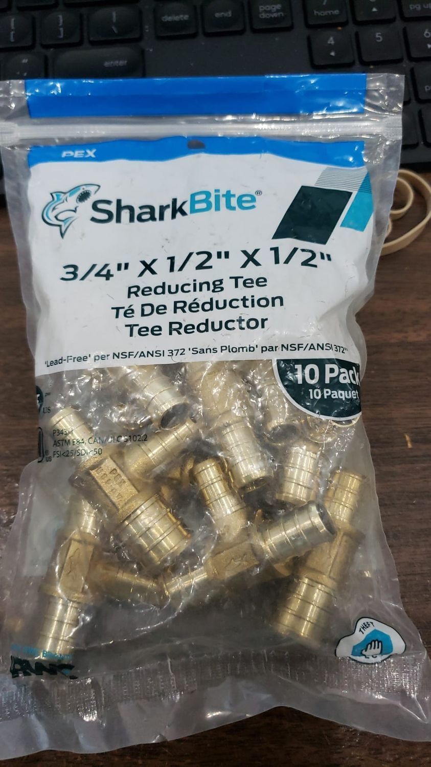 Shark Bite UC454LFA10 3/4" X 1/2" X 1/2" Brass PEX Reducing Tee 10 Pack