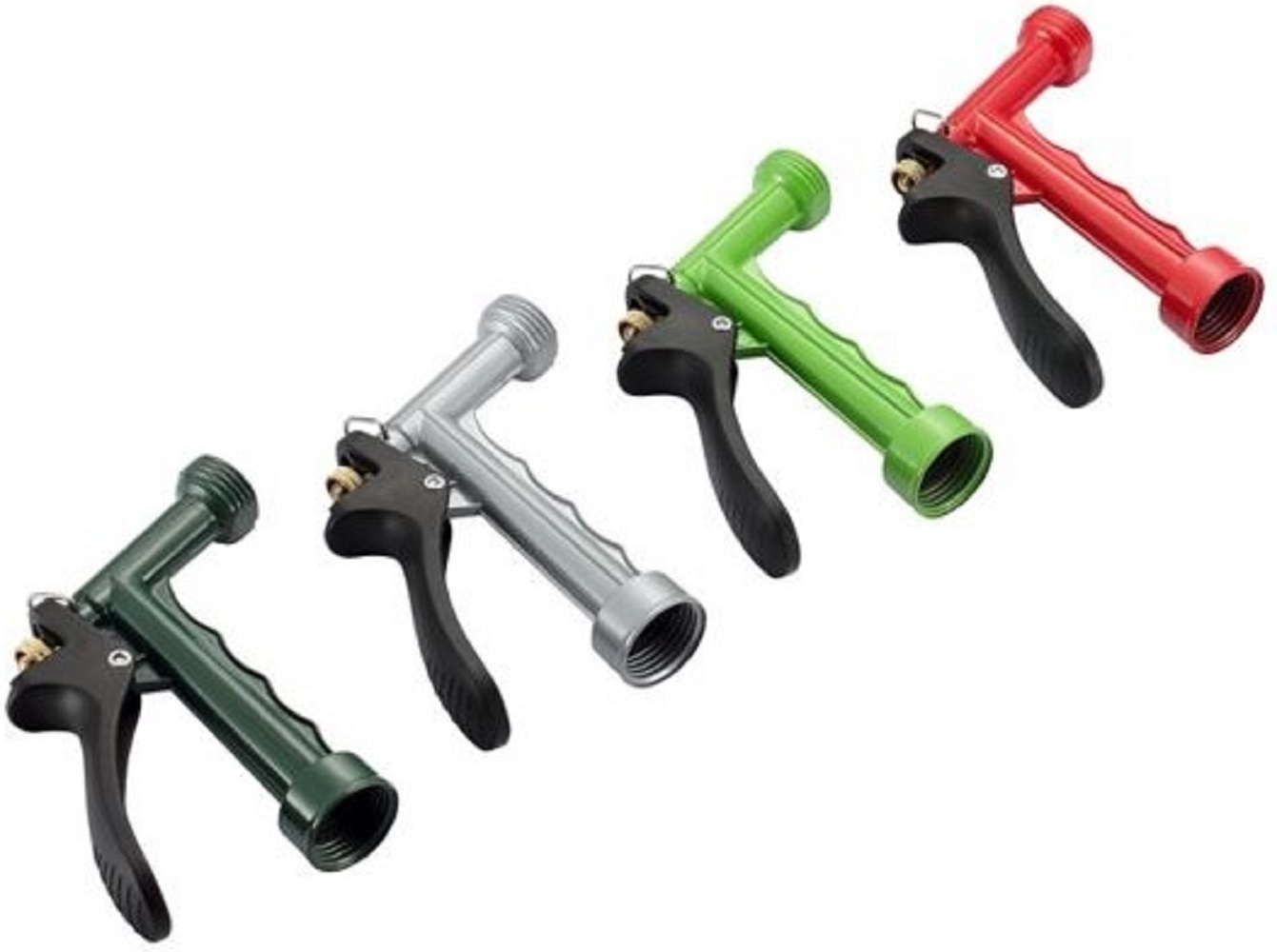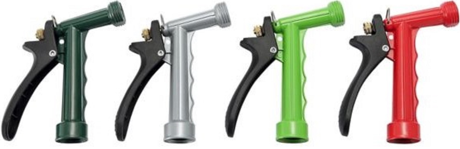 Locking clip on the trigger. Number of Spray Patterns: 3 Pressure Rating: 60 PSI Match with compatible hose sizes for your watering needs Main body: Zinc Alloy, Trigger: PA Thread connector: 3/4-11.5NH Weather resistant