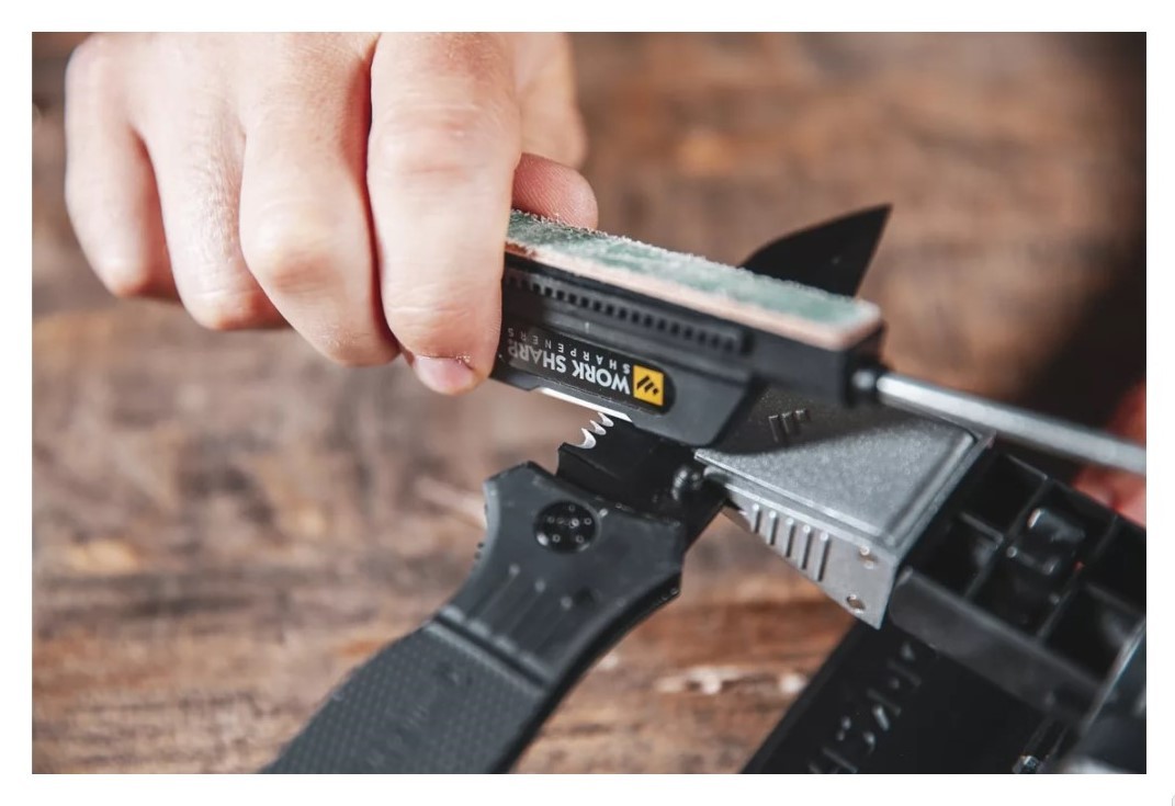 The Work Sharp Precision Adjust Upgrade Kit includes seven abrasive grits and a carry case for expanding your Precision Adjust Knife Sharpener system. The Upgrade Kit contains two Tri-Brasive assemblies, a leather strop, a ceramic serration sharpener, and a premium carry case. The coarse Tri-Brasive assembly includes 220, 320, and 400 grit diamond plates to quickly restore a sharp edge. The fine Tri-Brasive assembly includes 600, 800, grit diamond plates along with a fine ceramic stone to hone to an incredibly keen edge on any knife. The included leather strop refines and polishes your knife to a scary sharp edge.