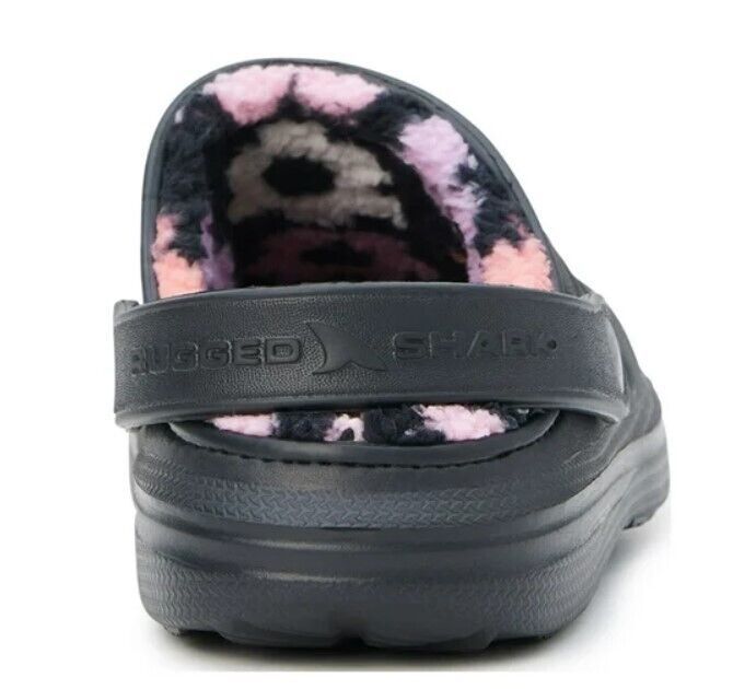 Rugged Shark Women’s Lined Clogs, Black Floral Size 10