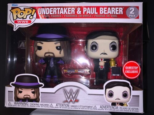 This Funko Pop 2 pack features WWE's Undertaker and Paul Bearer, exclusively released by GameStop. The vinyl figures are in brand new condition and belong to the Pop! product line. The Undertaker figure is a must-have for fans of the franchise and wrestling in general.