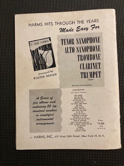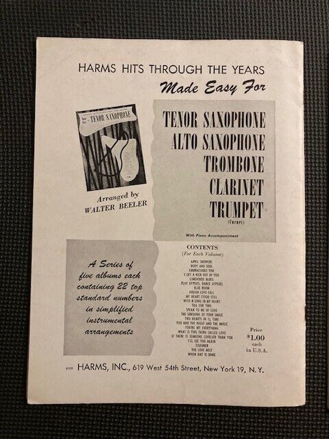 Lot of 2 HARMS HITS THROUGH THE YEARS Made Easy for Trumpet and Saxophone 1952