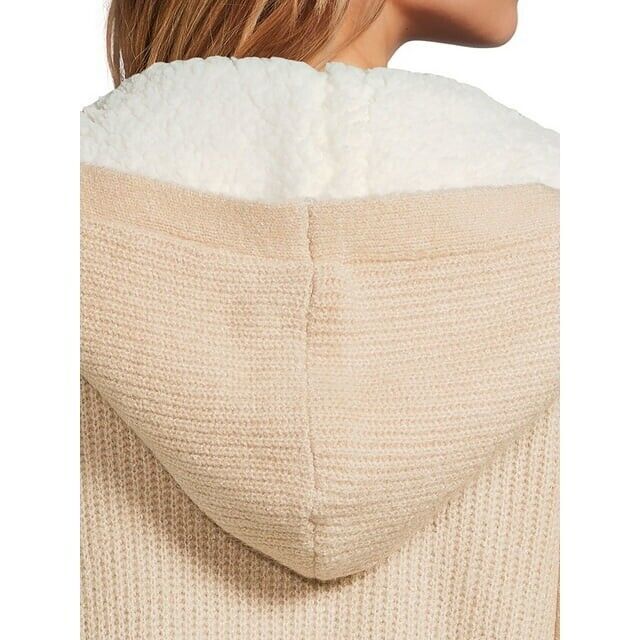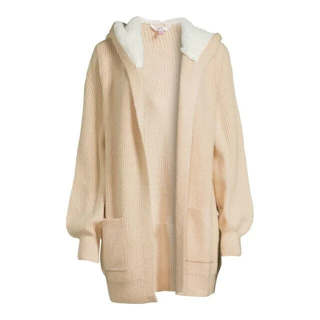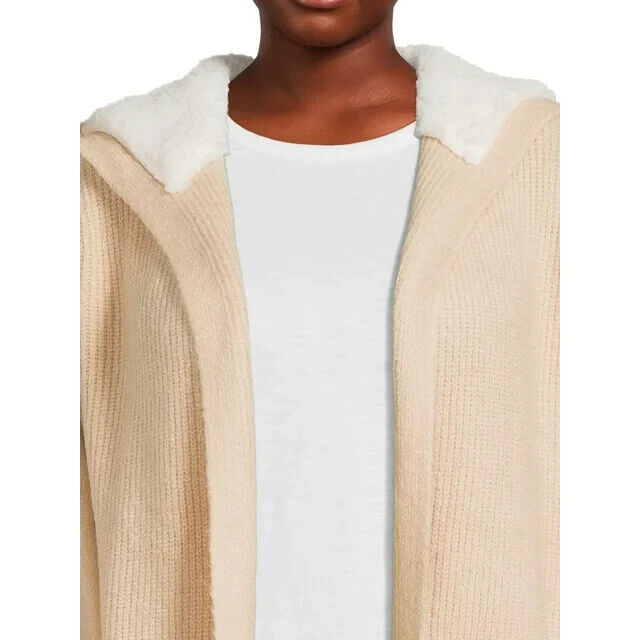 This long sleeve layer is a comfy statement piece to snuggle in on cold days or on a casual outing. The No Boundaries Solid Cardigan with Sherpa Hood has an open front closure, this cardigan also features a hood with faux sherpa trim for added coziness. Pair with comfiest joggers and sneakers for a laid back vibe.
