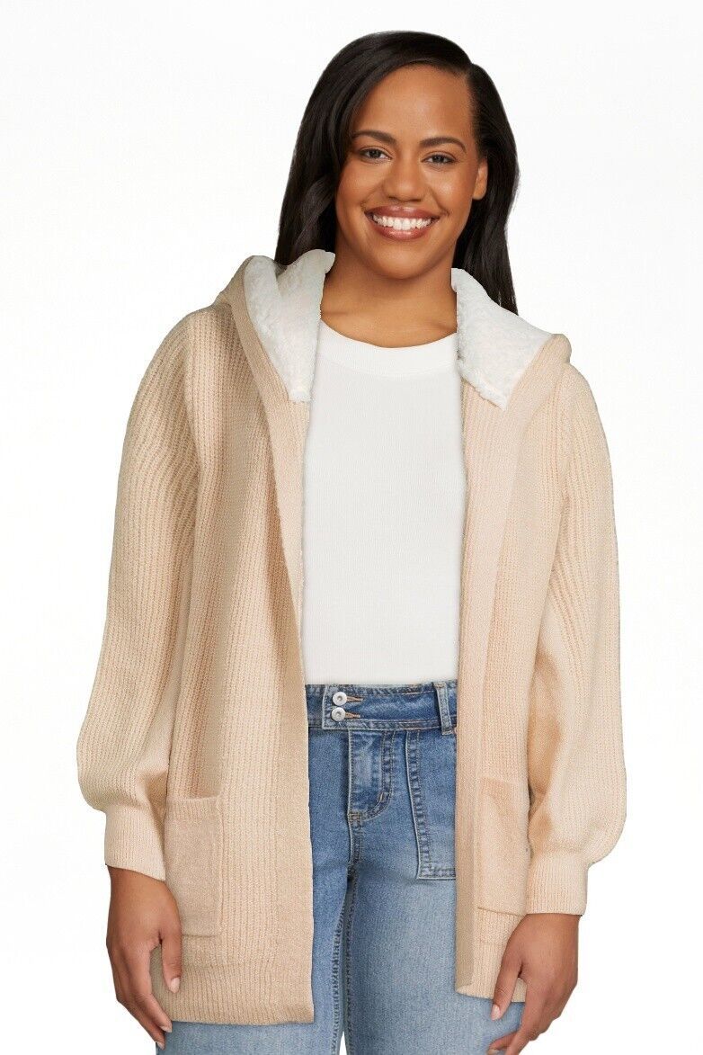 No Boundaries Juniors Solid Cardigan, Café Au Lait Size XXXL(21)