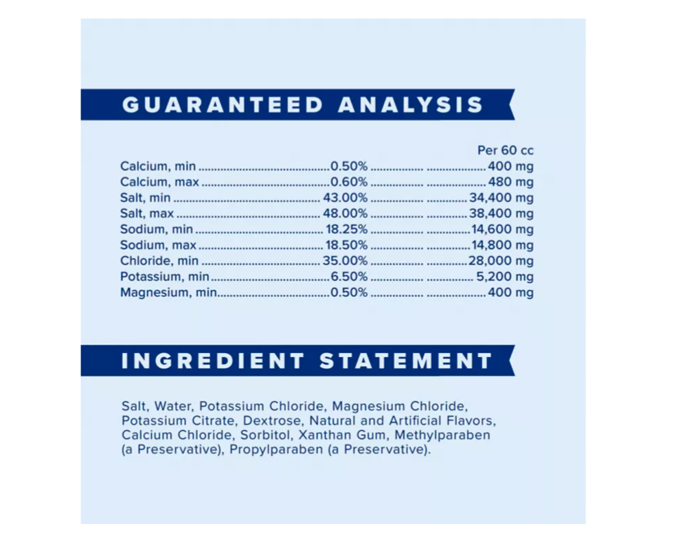 COMPLETE ELECTROLYTE FORMULA contains a balanced electrolyte profile with sodium chloride, potassium, magnesium and calcium.