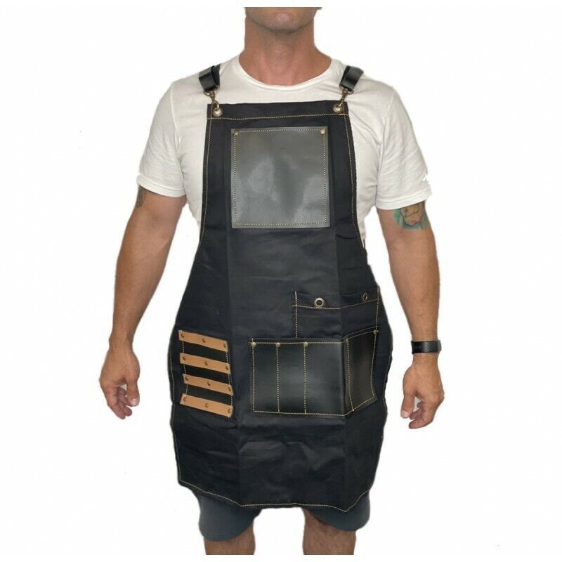Durable and highly functional apron made of a combination of canvas and leather, is perfect for the hard working professional who?s looking for style and comfort. The apron is adjustable but also includes an extension strap, so it?s guaranteed to fit any size person.