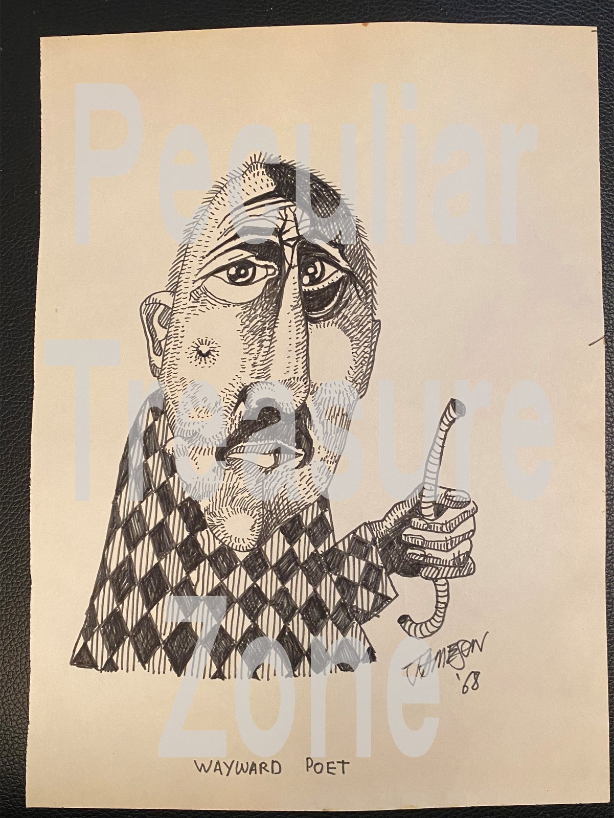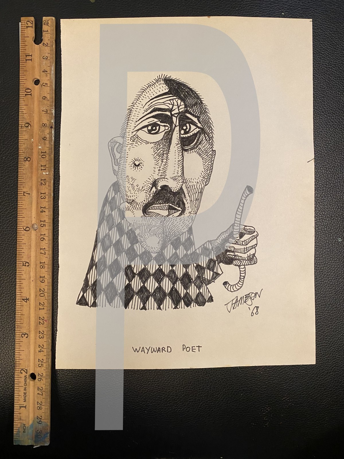 Bill Jameson Surrealism Drawing "Wayward Poet" 1968