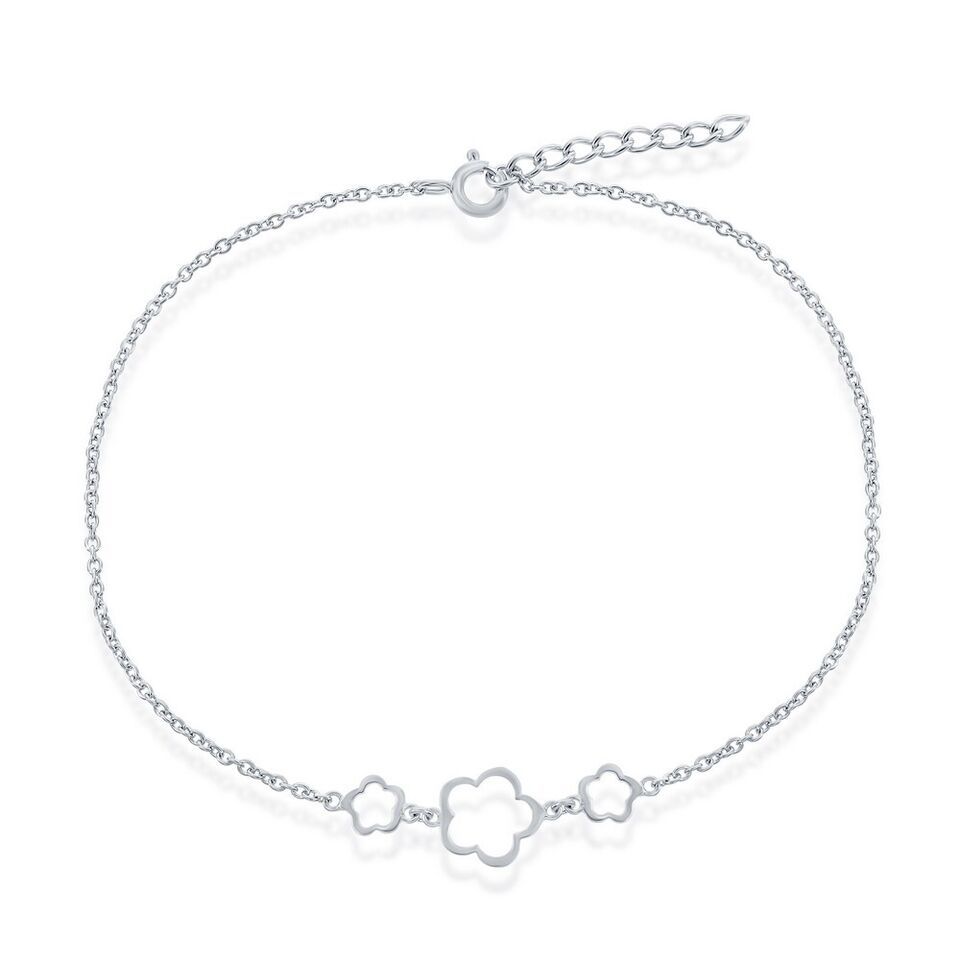 Sterling Silver W/ 3 Center Flowers Anklet and 36 similar items