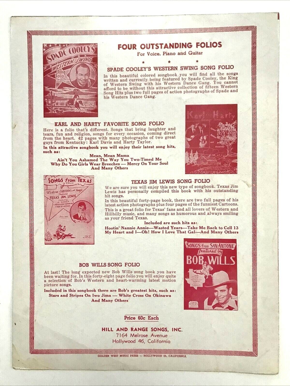 There's Not a Thing I Wouldn't Do For You Billy Hughes Eddy Arnold 1947 Sheet Music