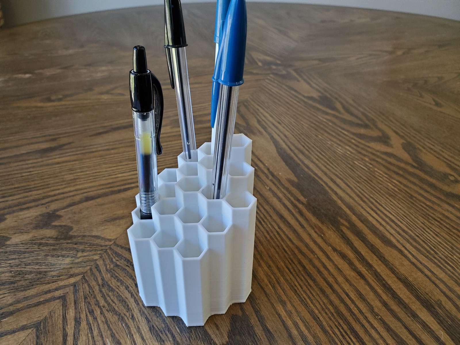 Meet the 'Bee-st Friend' for your desk! This honeycomb pen holder will keep your pens buzzing with excitement. No bees were harmed in the making of this hive-tastic accessory! ??? This is a hexagon organizer made to order and available in most colors for pens, markers, tools, makeup, or anything. Designed by Calvin Iba
