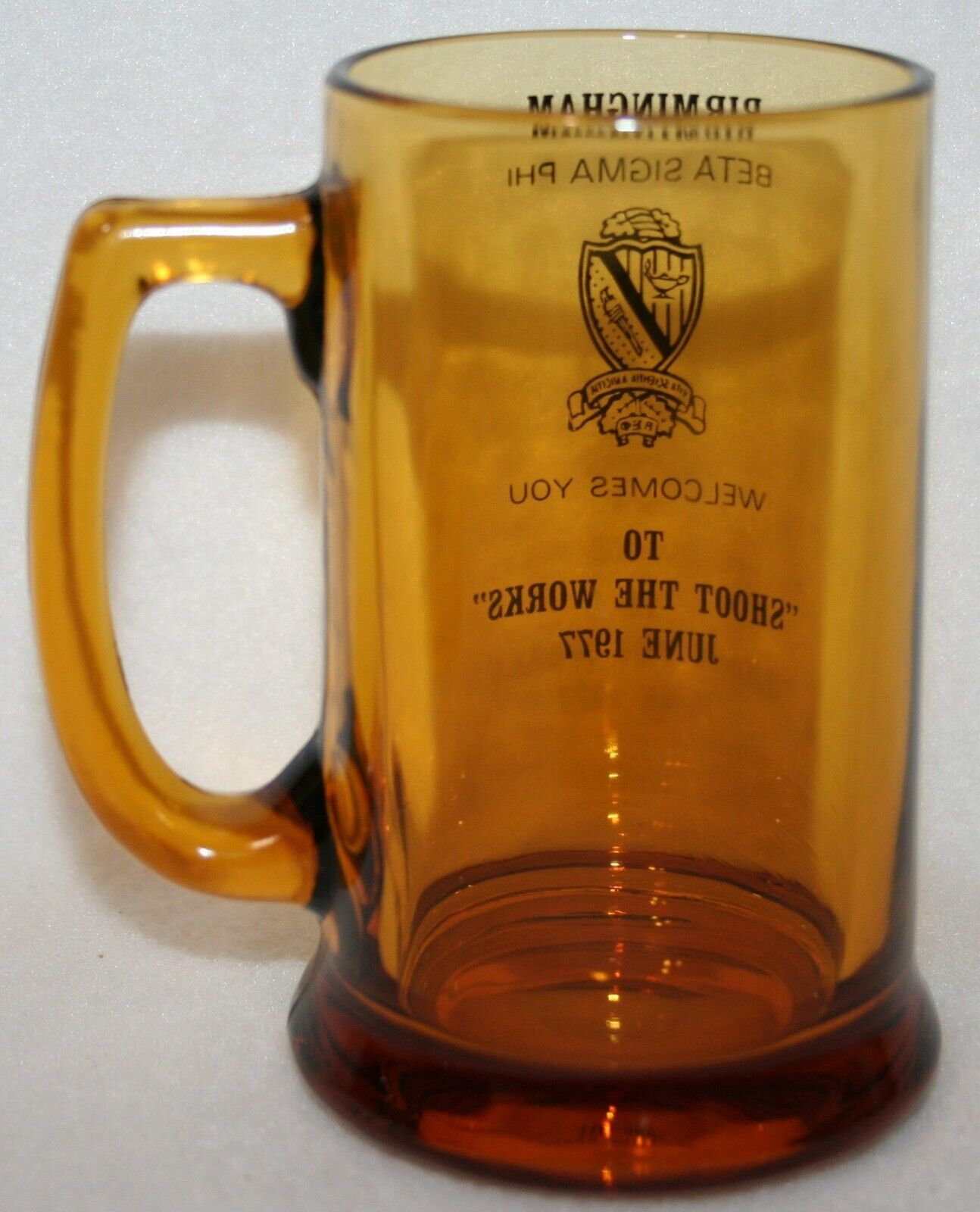 Vintage 70s BETA SIGMA PHI Sorority 1977 Birmingham Amber Glass Beer Mug