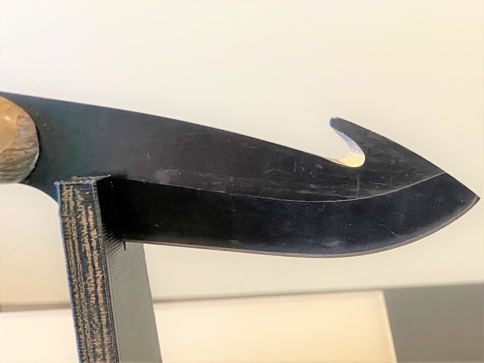 This listing features a Vintage Mossy Oak Gut Hook hunting Knife in very good condition with its original sheath.
