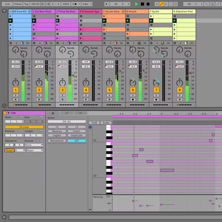 Live organizes multiple passes of an audio or MIDI performance into individual takes. Pick the best moments of each performance and combine them to create your perfect take. Or approach sound design in a new way by splicing together random samples from your library.