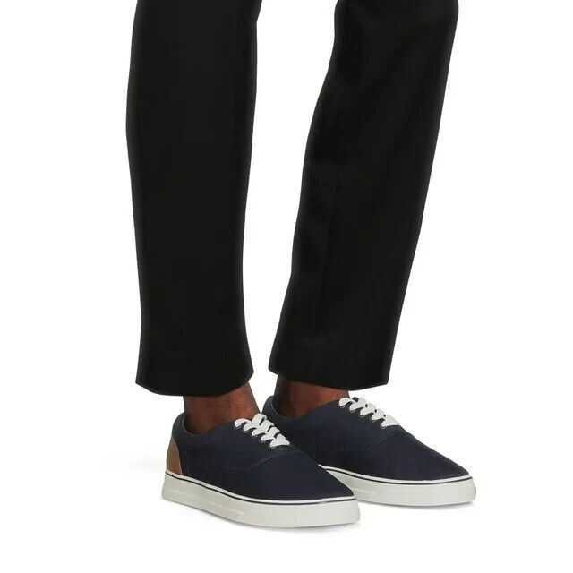 Lace up your look with these Chace Canvas Sneakers from Chaps. Your everyday classic in cotton canvas gets an update with faux leather trim and comfort details like a cushioned collar and memory foam footbed. The right amount of style and support for all your casual days, pairing with everything from shorts to jeans.