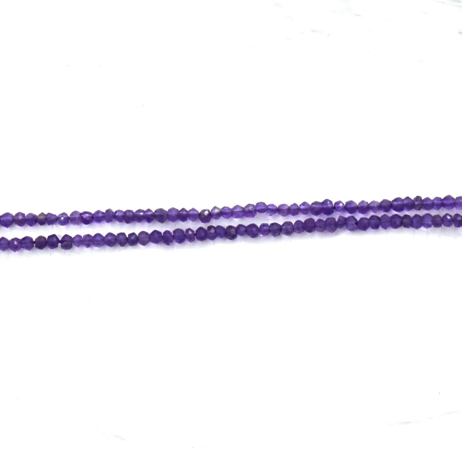 Forme de la pierre precieuse : perles rondes a facettes Couleur de la gemme : VioletTaille des pierres precieuses : 3,5-4 mm