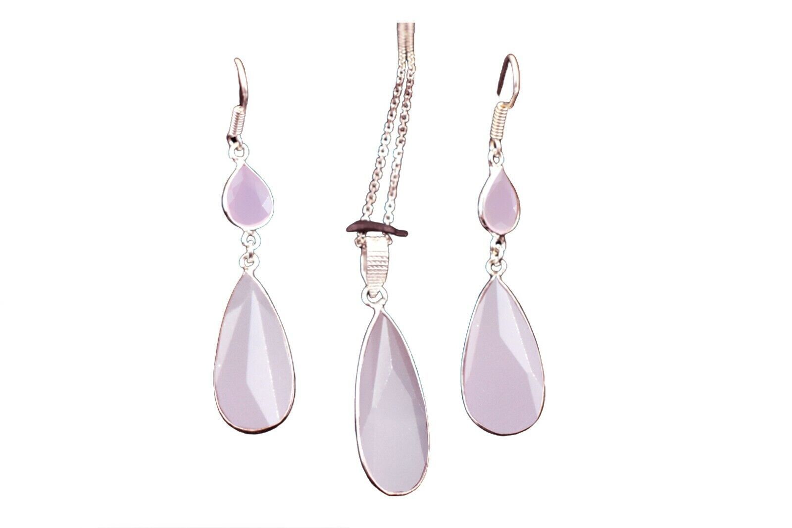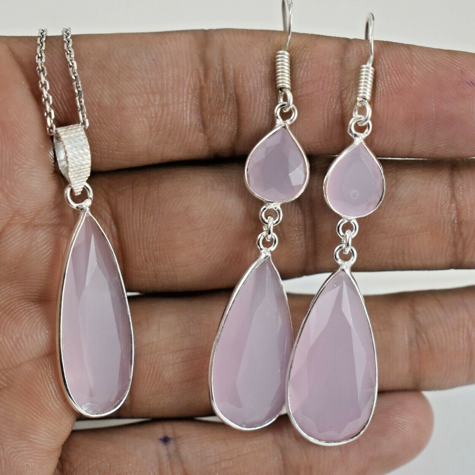 Argent Sterling Rose Quartz Pierre Précieuse Fait à la Main Pendentif Pour Mère