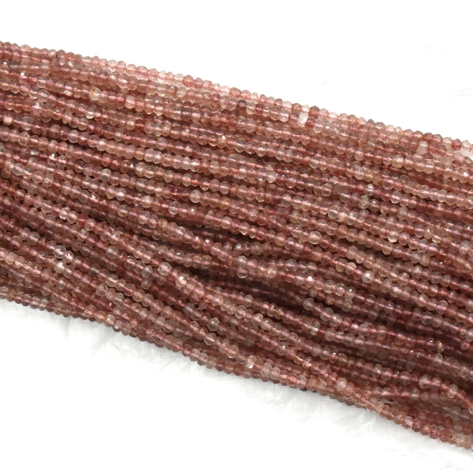 Natural Fresa Cuarzo 3-3.5mm Facetado Redondo Preciosas Cuentas 13" Hilos 1100