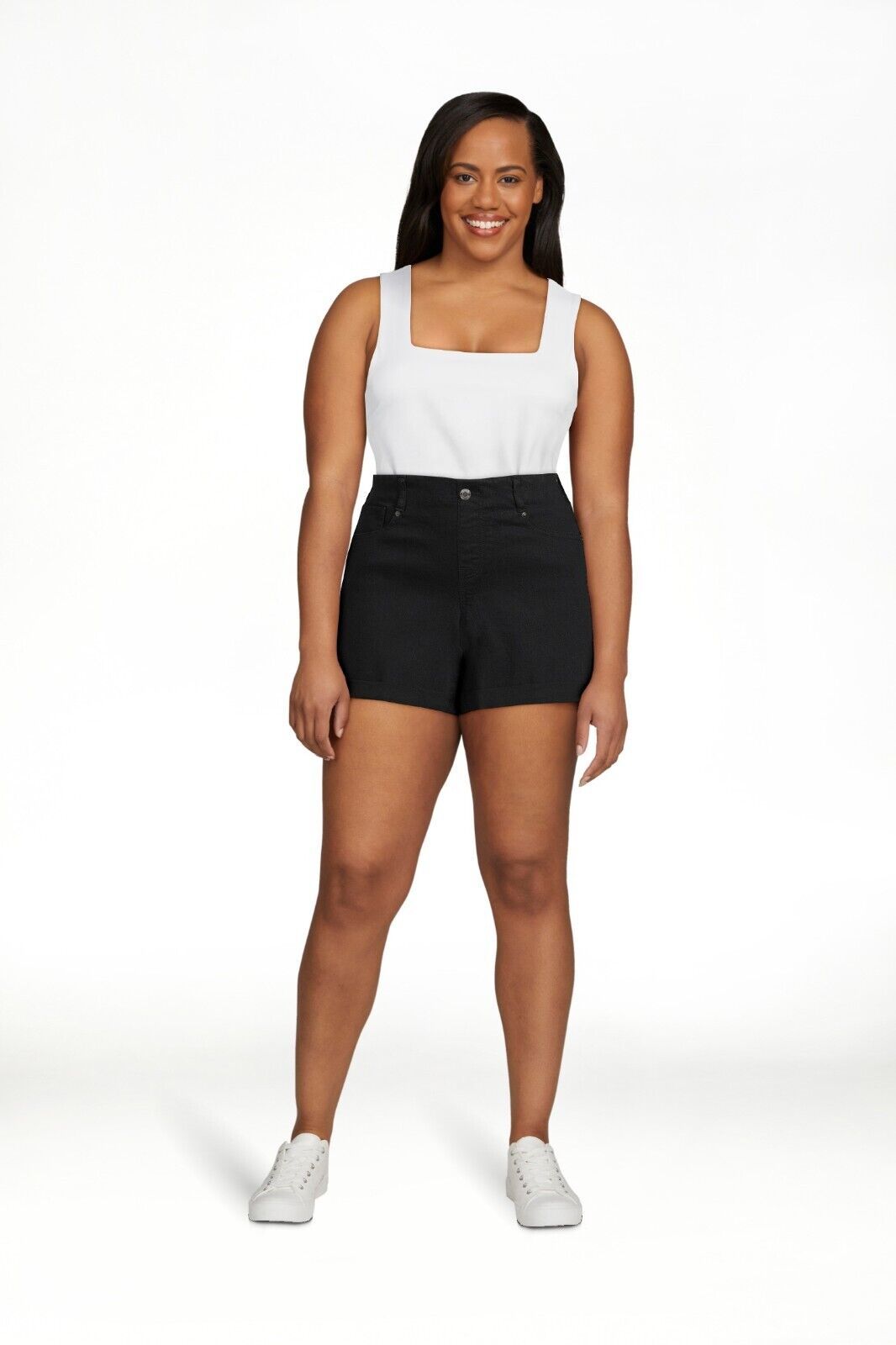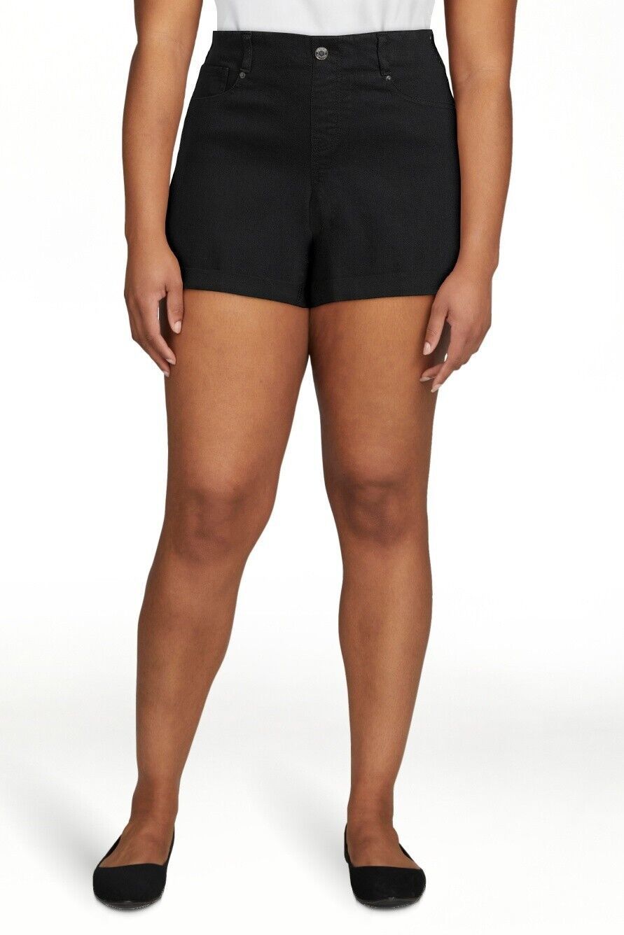 Time and Tru Women's Denim Shorts with Cuffed Hem, Black Size XL(16-18)