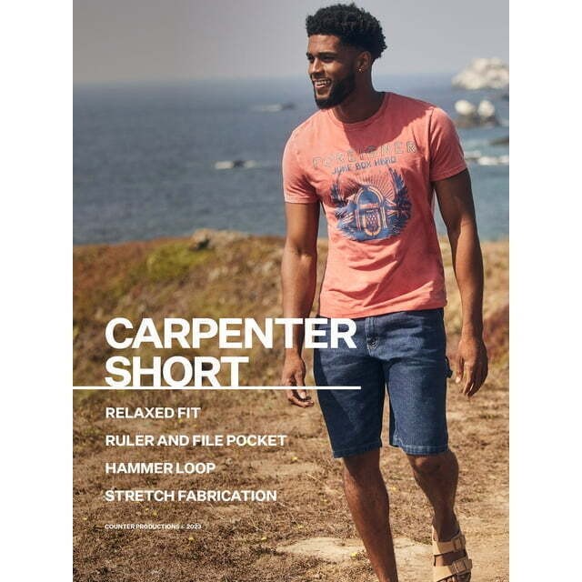 Made from a comfortable cotton blend, the Wrangler Men's Carpenter Denim Shorts combine comfort and durability for work, play, or both. These denim shorts sit just below the natural waistline and feature a relaxed fit as well as rounded hip pockets, a rule pocket and a hammer loop to keep your essentials in reach.
