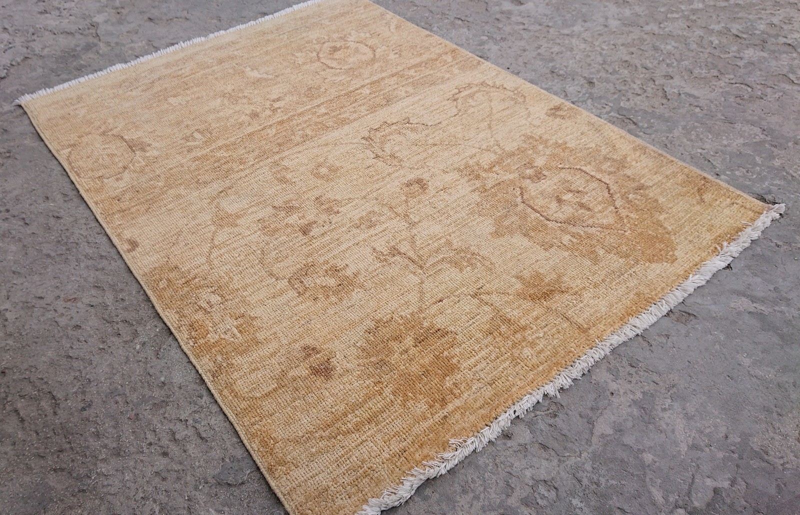 Vintage Colorful Boho Ivory Oriental Rug 2'7" x 3'5"