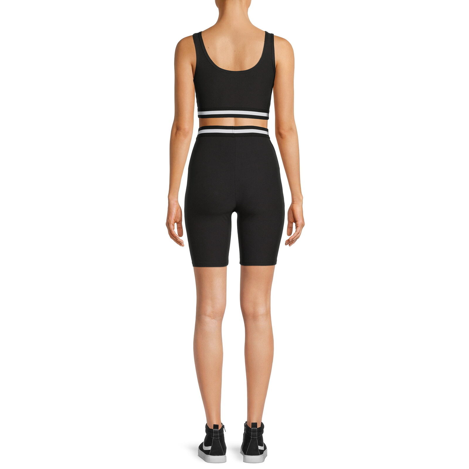 Featuring a matching sports bra and bike short in four trendy colorways,