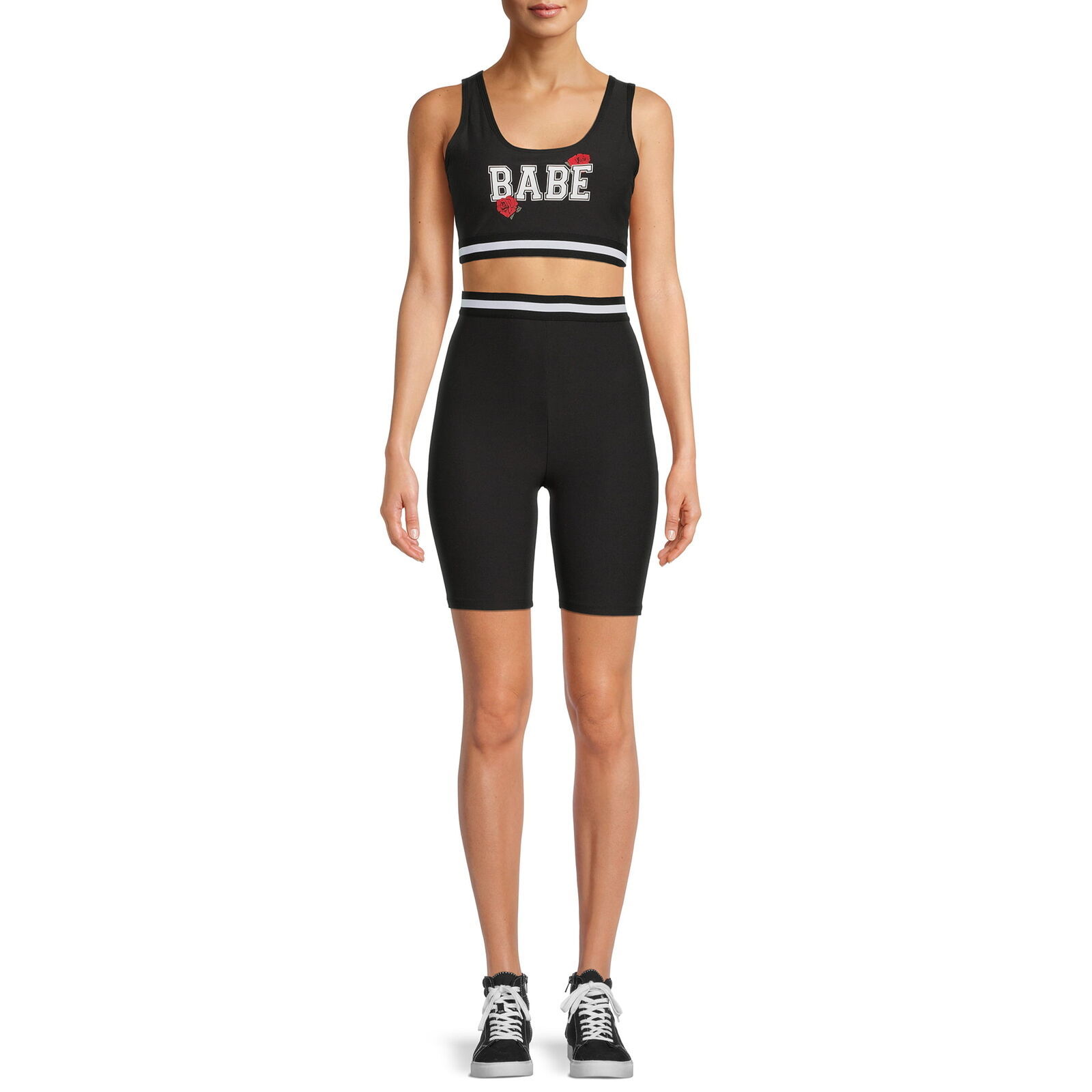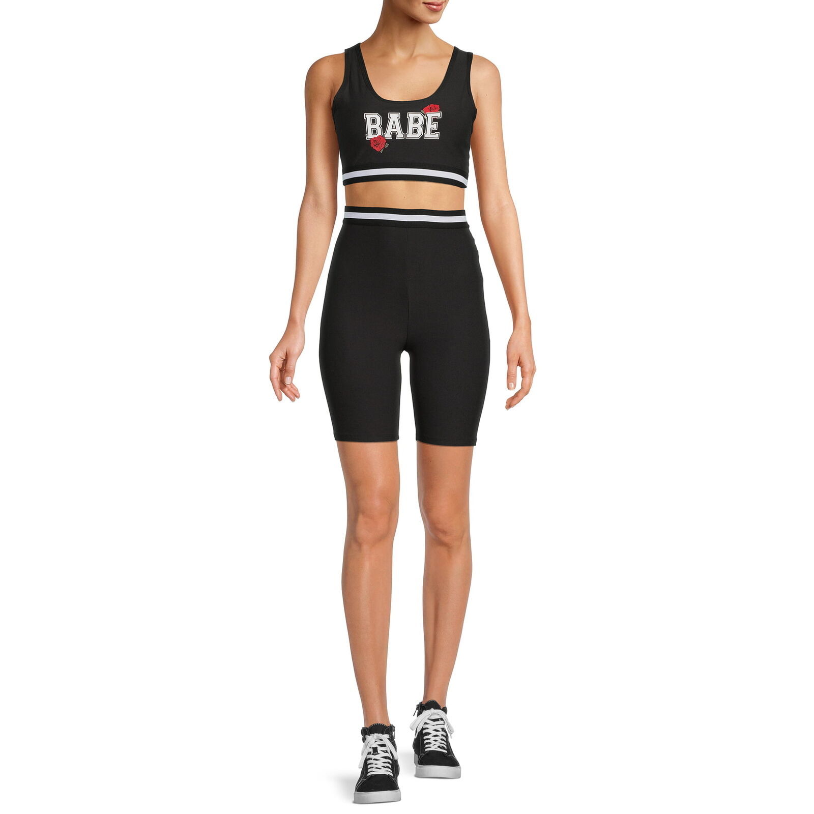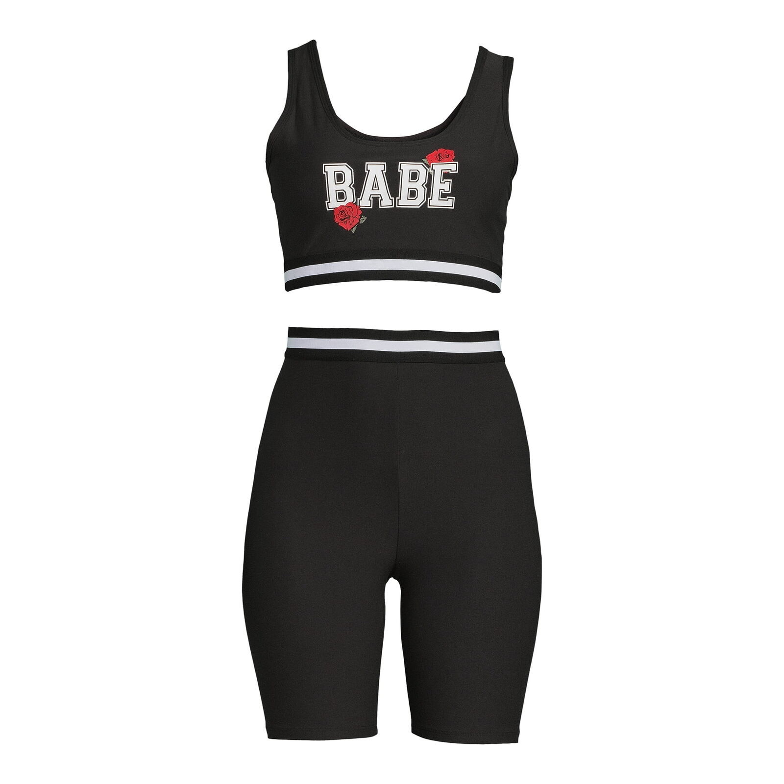 No Boundaries Juniors Graphic Sports Bra Biker Short 2-Pcs Set Black Sz XXL 19