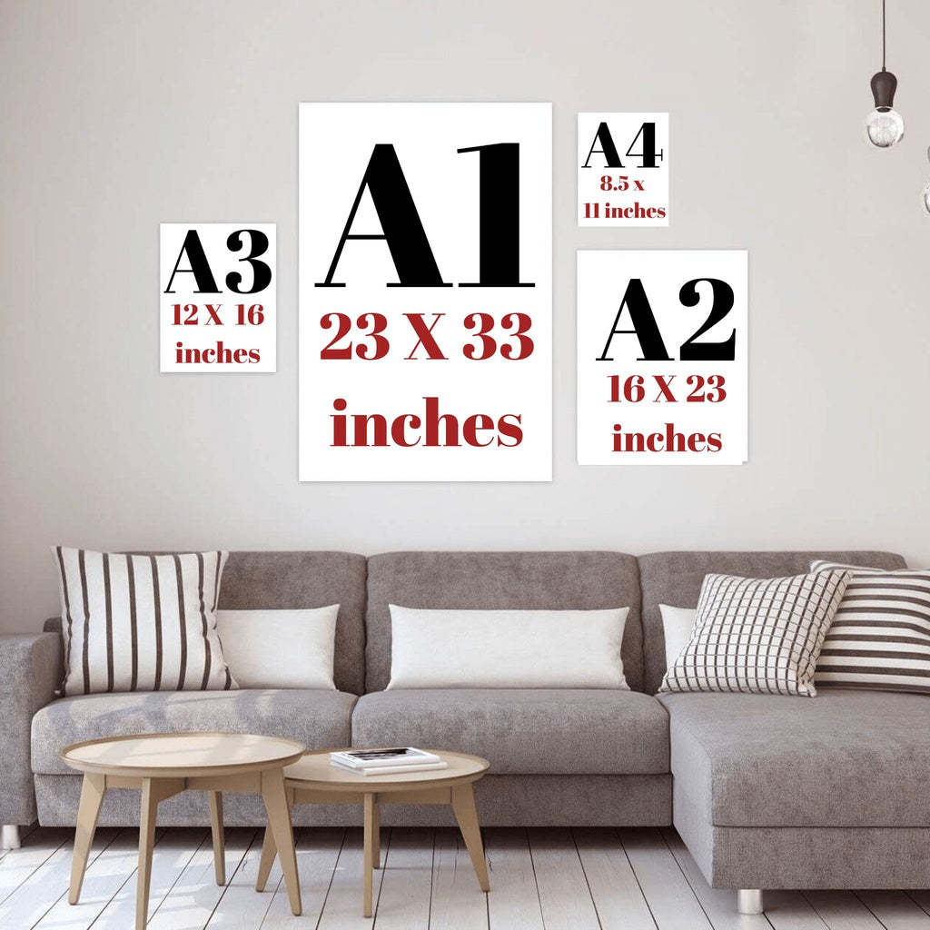 Our posters are printed on photo quality 260gsm satin semi gloss paper using latest Technology and High Quality Inks.