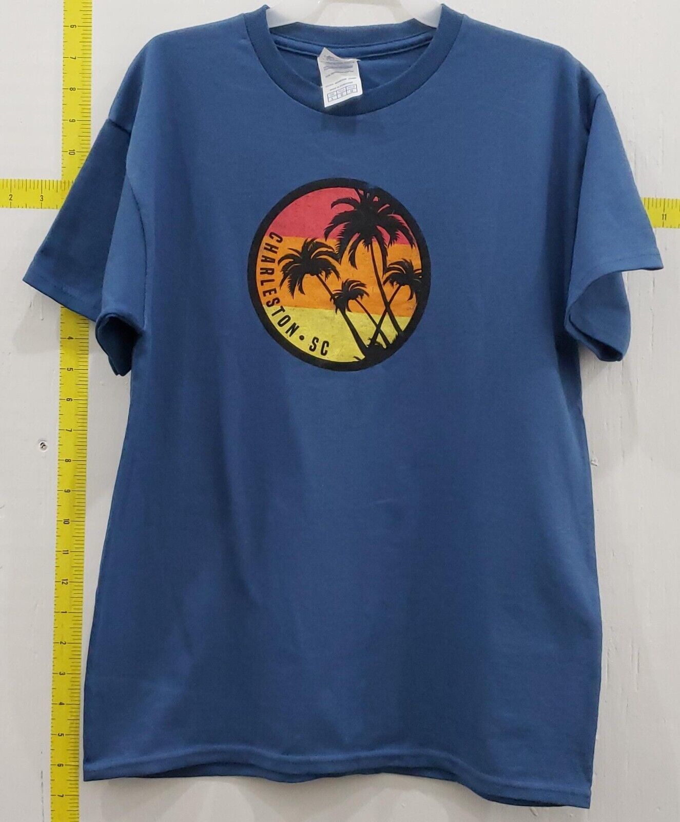 Charleston SC Youth Souvenir 'Tropical Palm Trees' Graphic T-Shirt Blue Size L