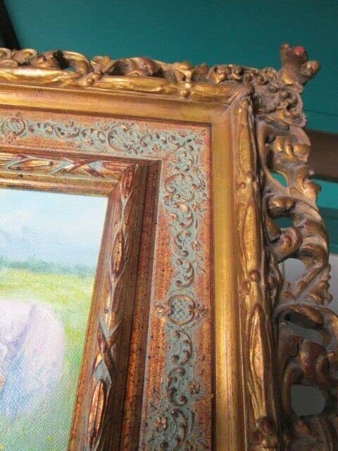 ORIGINAL OIL ON CANVAS LADIES IN THE PARK SIGNED 20 x 19" FRAMED