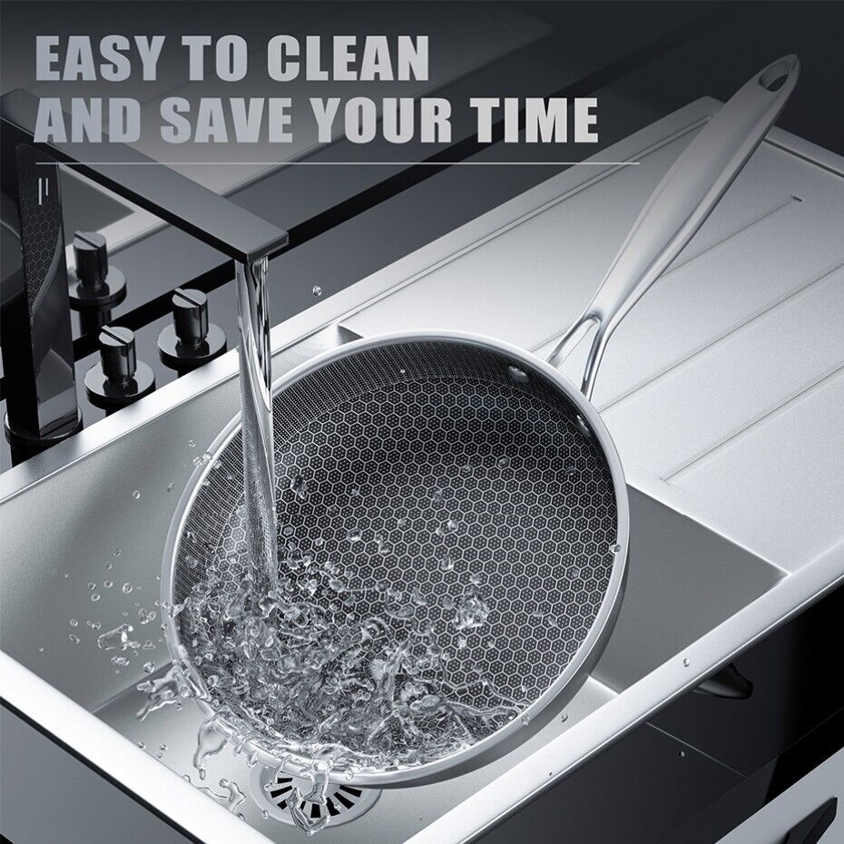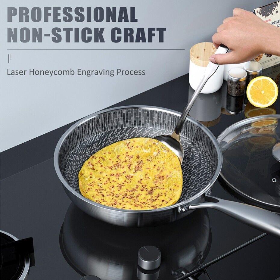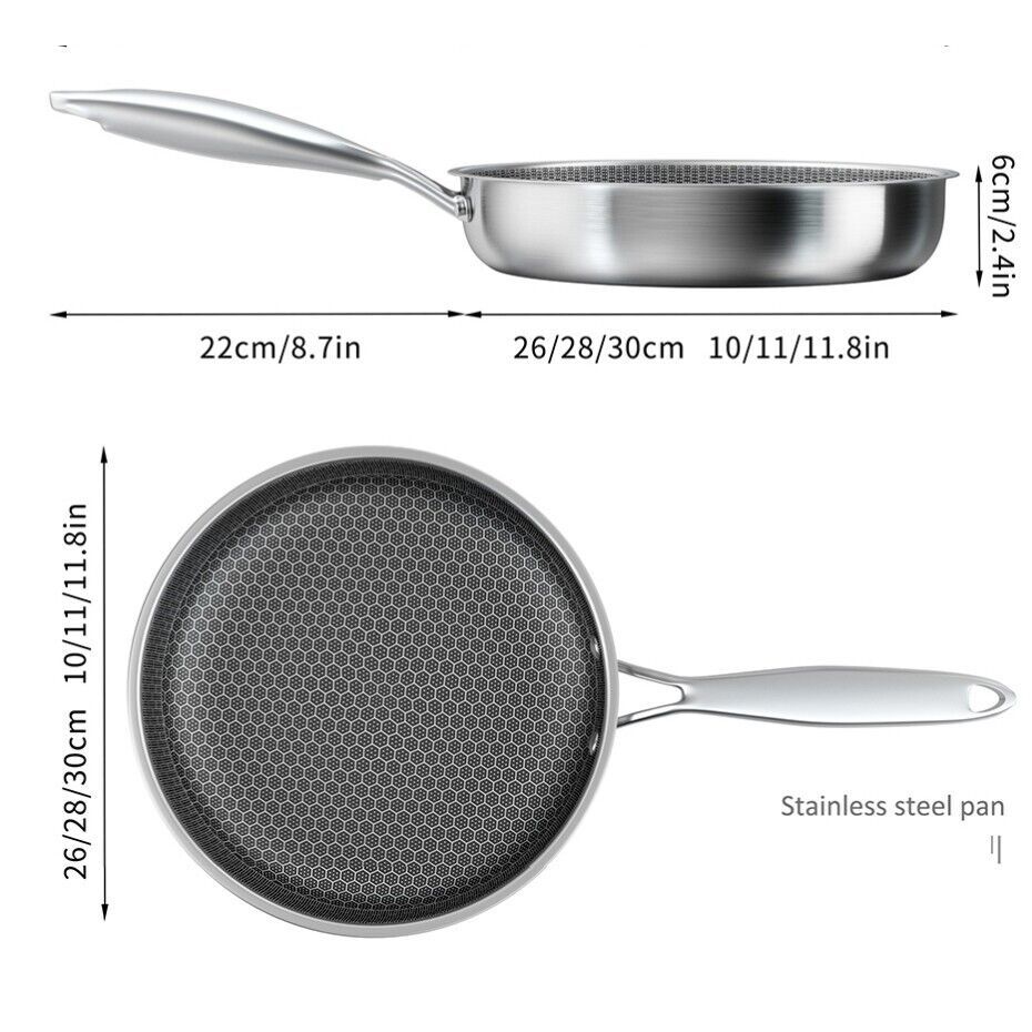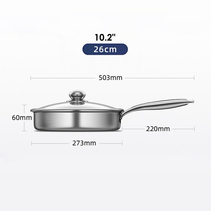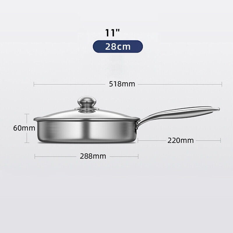 Hybrid Stainless Steel Frying Pan Induction Gas Ceramic Electric Stove Glass Lid