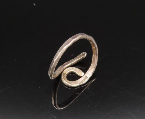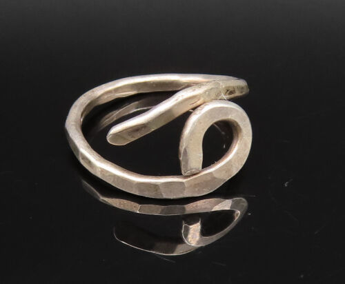 925 Silver - Vintage Hammered Spiral Swirl Adjustable Wrap Ring Sz 8 - RG25977