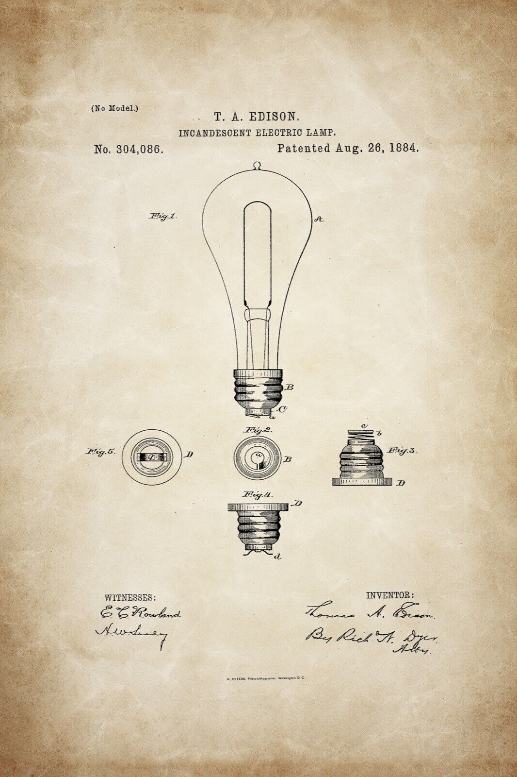 12957.Decoration Poster.Wall art.Home interior Room design.Patent.Edison lamp