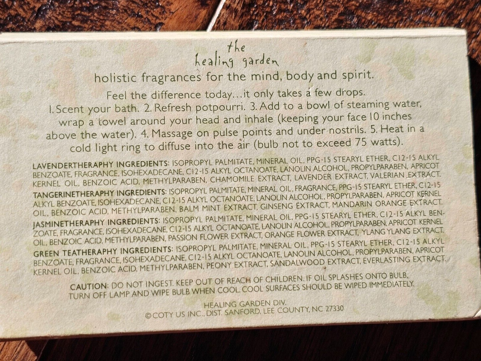 New! Healing Garden Essential Oils Set 4 Pack Jasmine Lavender Green Tea Tangerine WDRWR