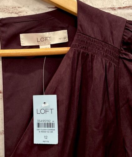 LOFT Womens Drapey V- Neck Jumpsuit Deep Bordeaux Wide Leg Cropped Size 12P NEW