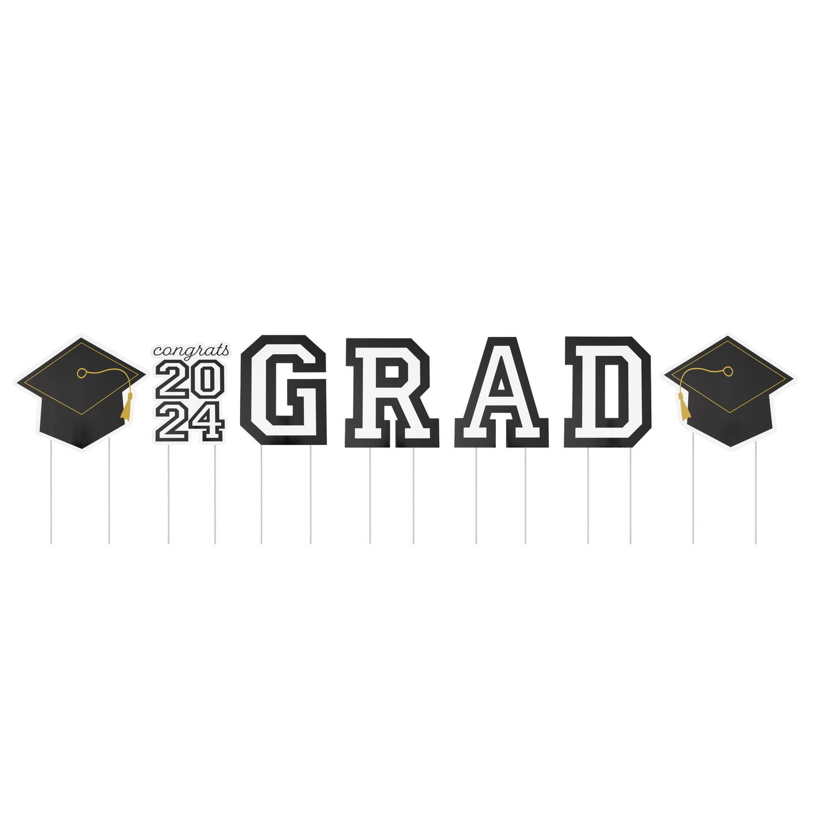 Graduation 2024 Black & White Staked Yard Signs, 7 Pieces, by Way To Celebrate