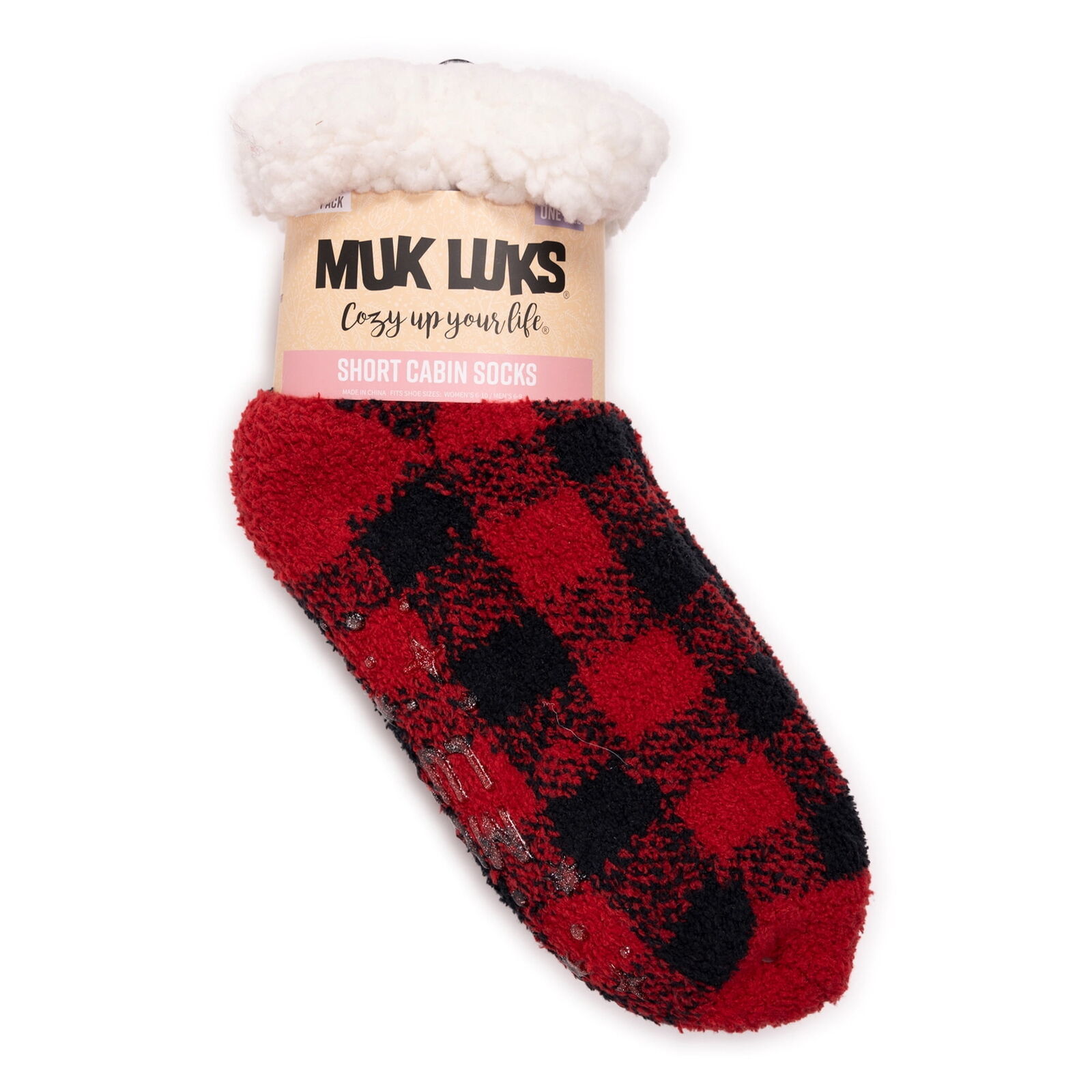 MUK LUKS Women's 2 Pair Pack SHORT Cabin Socks are soft and fun! This SHORTER cabin sock is easy to pull on and just covers your ankle. Cozy up your life with these fully lined short cabin socks with non-skid bottom. The Lining is made from 67% RECYCLED PLASTIC. So it is not only great for the environment, but keeps your toes comfortably warm!