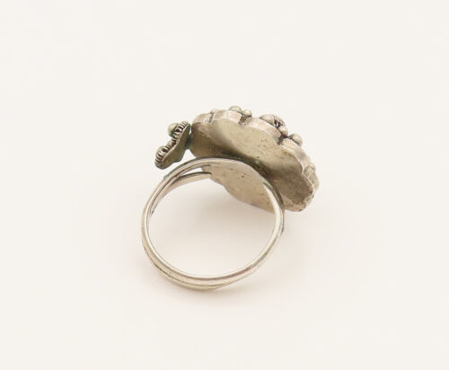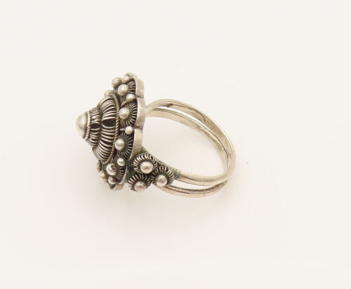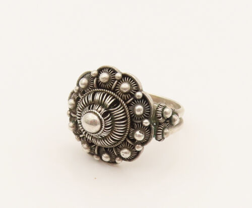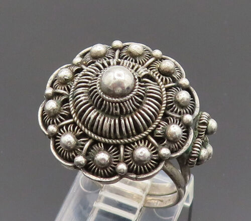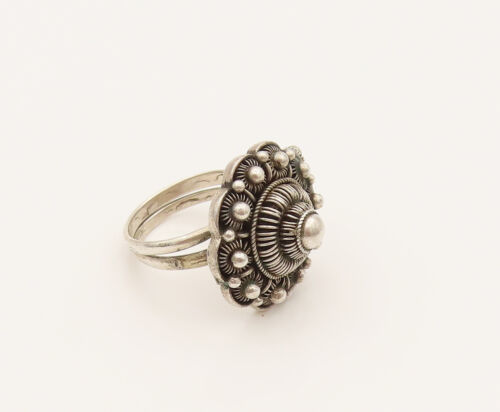 925 Silver - Vintage 3D Beaded & Wire Flower Adjustable Ring Sz 6.5 - RG26269