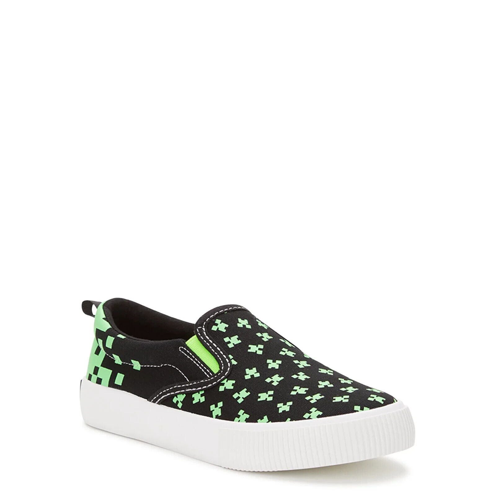 Minecraft Boys Canvas Slip-on Sneakers, Black/Green Size 2