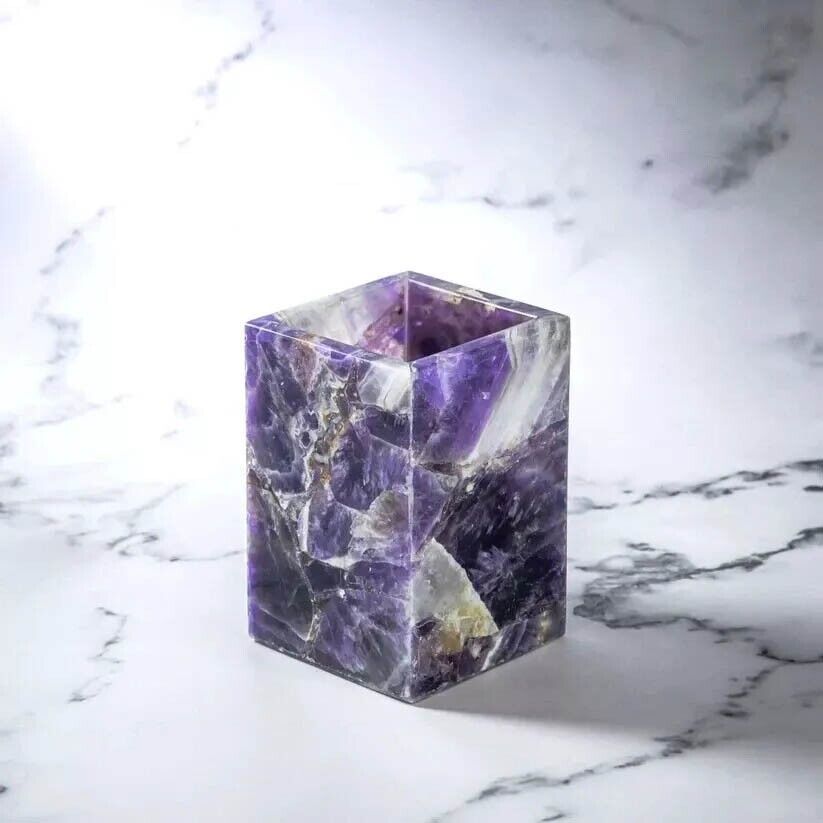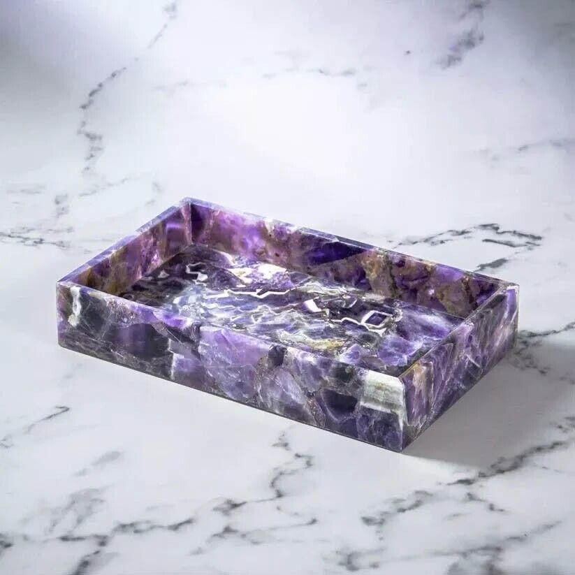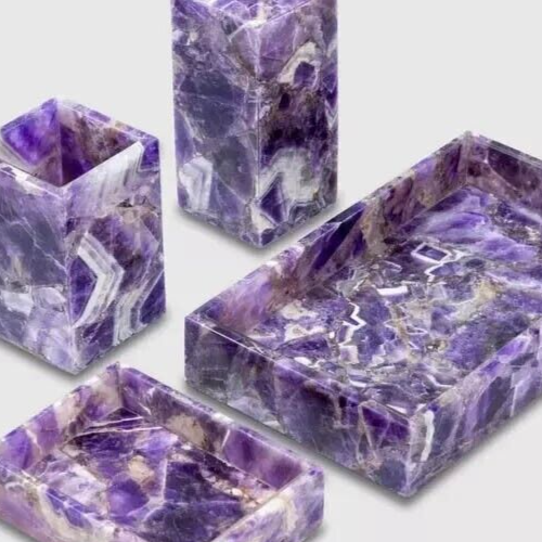 Amethyst Stone Bathroom Accessories Set Vanity Top Handmade Art with 4 Pecs Gift