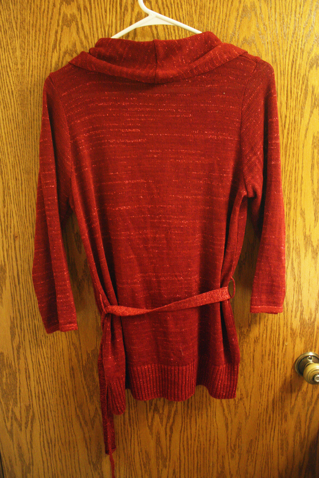 AGB Red Sparkly Belted Sweater 3/4 Sleeve Cowl Neck - Size Large